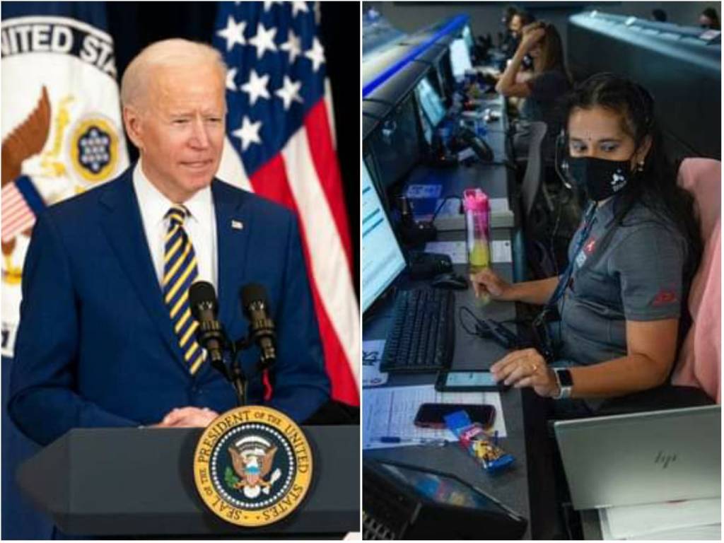 In a teleconference call with NASA’s Swati Mohan, Biden lavishes praise on the India-born aerospace engineer and the entire team behind the Perseverance rover landing on Mars